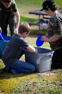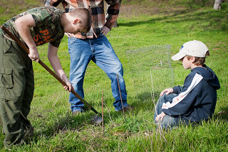 The Webelos went camping this past weekend–yes, in January! And the only rainy day we have had in weeks was that one night! The boys mapped out surviving seedlings and helped clear the ground around them for the rangers. They also learned how to finish the ends or ropes, cook, clean dishes and set up camp in general. And even though they all got soaked and cold in the night, they had fun.