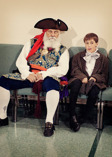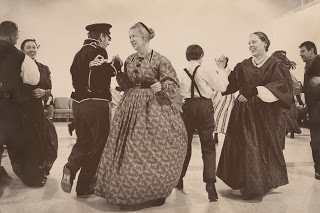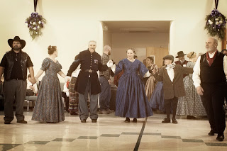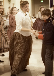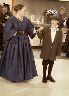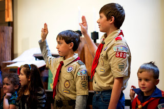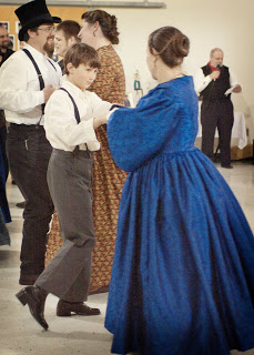 Colby and I and the Kelley family went to an 1850’s dance/anniversary party for his former teacher and her husband. Everyone was in period costume, and there was a caller and a live “band.” We walked through the dances before starting, but there was still a lot of confusion and laughter as dancers ended up anywhere but where they were supposed to. We followed that up this morning with Scout Sunday at the church that sponsors Colby’s Boy Scout Troop. And Tom got extra points for actually kneeling on that torn-up knee of his!