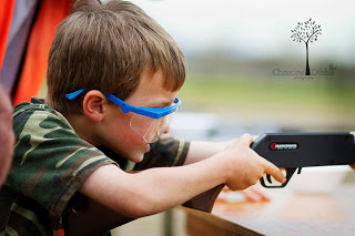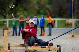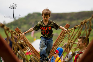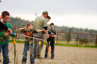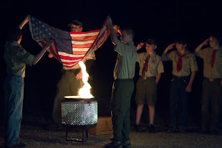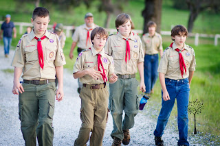 We spent last weekend camping for our annual Cub-O-Ree. The weather was nice, but I did make Tom take the trailer since he is still on crutches. He was in charge of it all, and he hobbled around directing things as always. At night he was glad to have a real bed to put that swollen knee on. The boys rotated through event stations. They jousted from a cubmobile, crossed a rope bridge, ran an obstacle course, played kickball, “Capture the Maiden” (it was a Knight theme), knight training, archery and BB guns. Sawyer didn’t understand that the frisbees at frisbee golf were not for him! There were giant frogs and lots of footballs for the kids to catch. Colby attended as a Boy Scout with his troop to help out. In the evening, the Boy Scouts led a flag retirement ceremony after the skits were done. All of us went home exhausted and dirty!