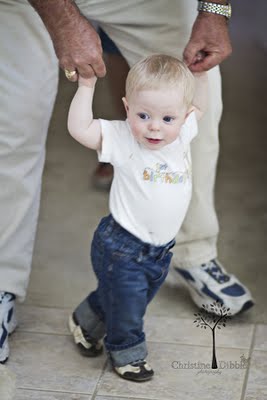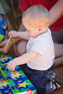 The cutest little nephew ever had a first birthday party last weekend. Boy were his older cousins excited to see him! It surprises me to see how fascinated they are with a baby so much younger than they are! I wanted to get pictures of all four of them together, but all he did was cry. Later, once he was full of cake and had piles of new toys and clothes, he warmed up and had a lot of fun walking laps around the house and crawling on the floor with them.
