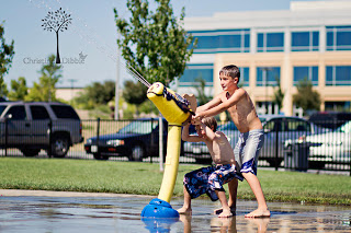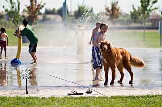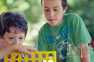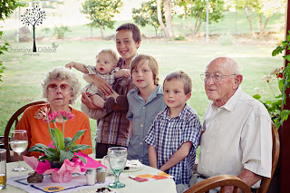 This weekend we had a 90th birthday party for my grandfather. It just happened to be held on the day of his sister’s birthday, so it was a double celebration. Among the guests were four great grandsons and four dogs which meant lots of activity. My boys had a lot of fun leading their baby cousin around the yard, tossing the footballs, and playing Connect Four. They even found a dying bird. After making him comfortable for his last night, they had a funeral the next morning. The day after the party, we moved on to see the cousins on the other side of the family. We let all five boys run at a water park to keep cool and wear them out.
