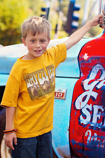 This kid turned eight last week. Eight! And he had the bad luck of having a dentist appointment on his birthday and having a baby tooth pulled to make room for bigger teeth. So he was not happy at all about smiling for pictures. Since I was still on one crutch, making it a big ordeal was not something I was up for either. So we settled for a truck right by the dentist’s office.