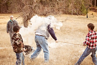 On Christmas afternoon, I wanted to get a family photo to print on a canvas. And since I got a new lens as a gift, it was a good excuse to try it out too! We went to one of my new favorite places for pictures, and it was a great spot to let the boys and the dog run wild. The boys found the cattails, and, of course, they had to start a war. Even Tom got in on it. The cattail fur was flying everywhere! But it did make for great photos!