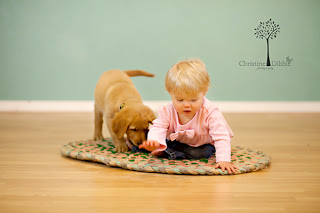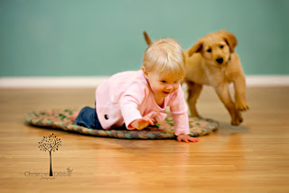 This little ladybug came for her nine month portraits, and since she has a new furry sibling, he came along too. But trying to make a nine month old and a seven week old puppy sit for photos is next to impossible when they both want to explore. Yet we managed to get a couple of them together. And of course there were lots of cute shots of the happiest baby I have ever met!